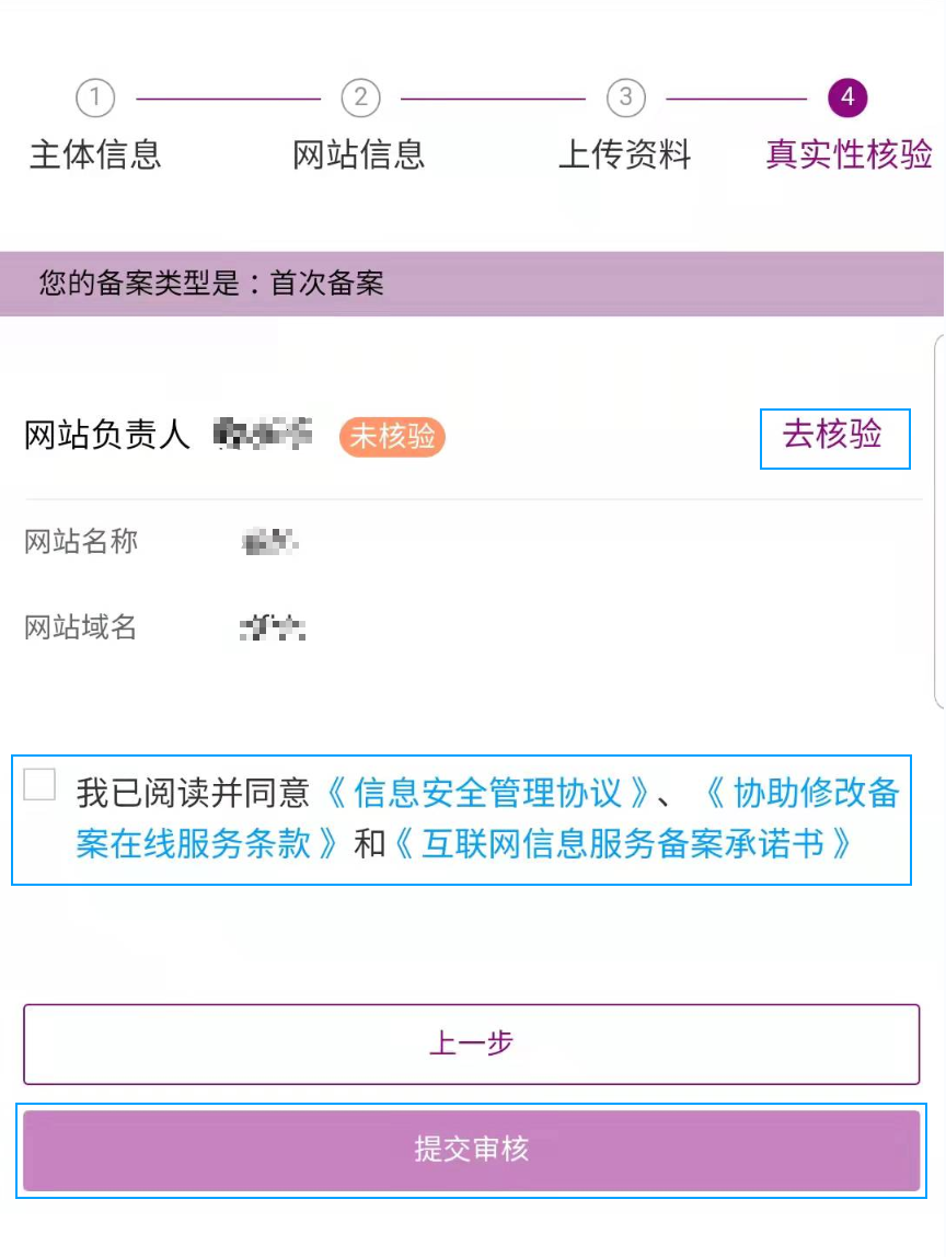 核验通过后,阅读并勾选相关协议、服务条款及承诺书。