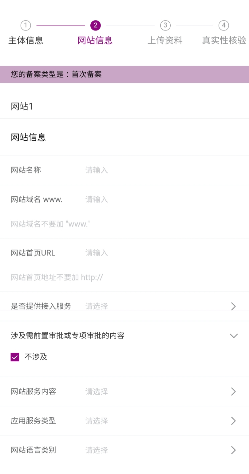 1、已确定主办单位信息;已购买紫光云服务器及IP;域名已注册。