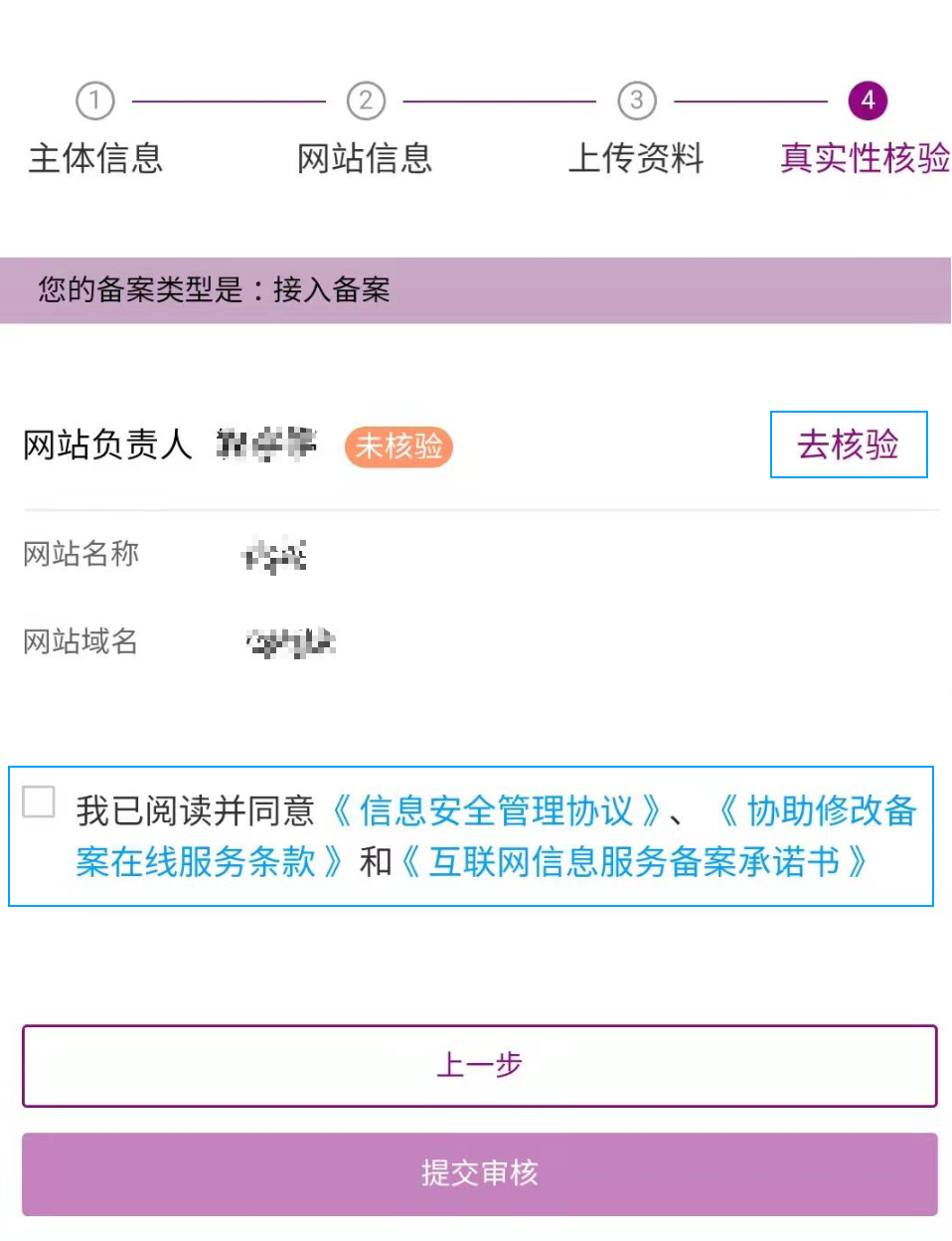 核验通过后,阅读并勾选相关协议、服务条款及承诺书。