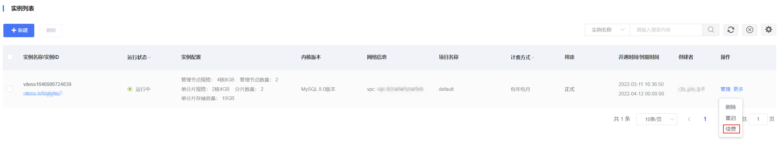 在实例列表界面,依次选择待续费的实例后的“更多 > 续费”。
