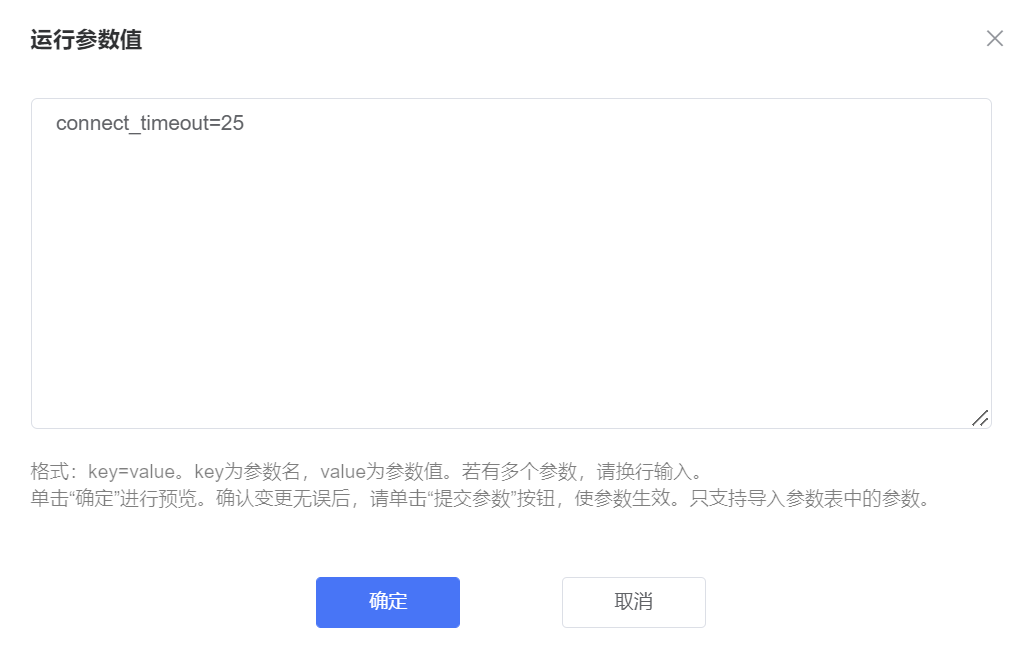导入完成后,单击页面上方的“提交参数”,并在确认修改弹窗中单击“确定”,完成修改。