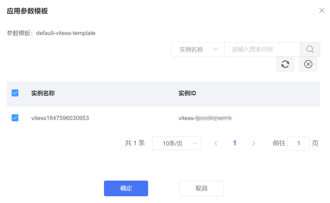 在应用参数模板弹窗中,勾选待应用的实例,单击“确定”。