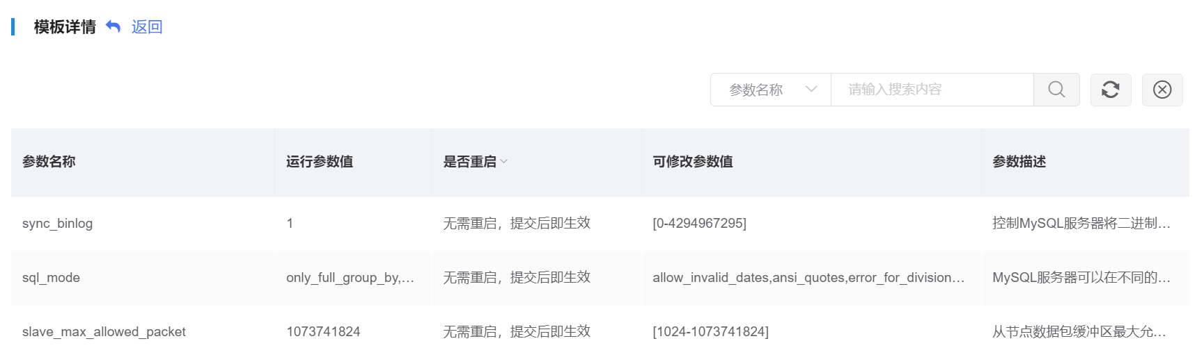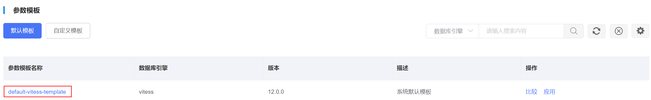 系统默认创建一个参数模板,默认模板不支持修改参数和删除等操作,仅支持比较和应用到实例。