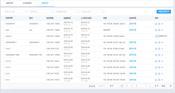 支持检测任务设置,可创建检查任务,设置检测漏洞及检测主机范围。