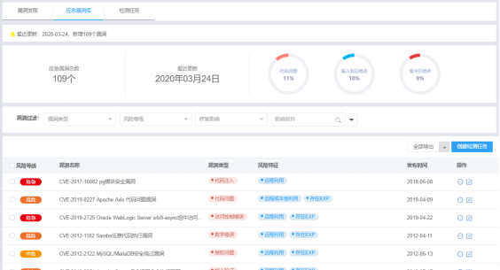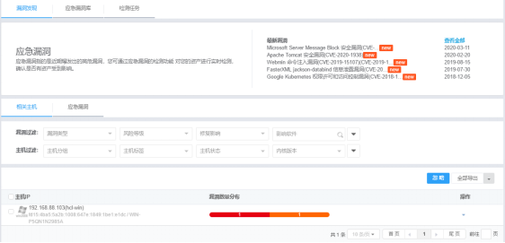 依次点击页面左侧导航栏中的“漏洞风险 > 应急漏洞”,进入应急漏洞页面。