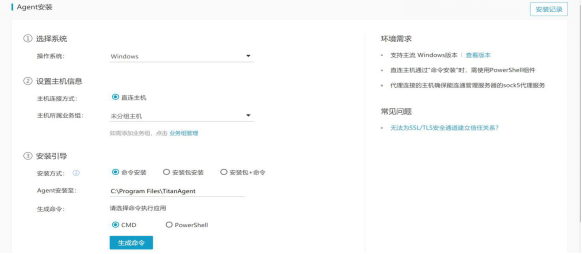 安装引导 | Linux系统仅支持命令安装,点击生成命令。 |
