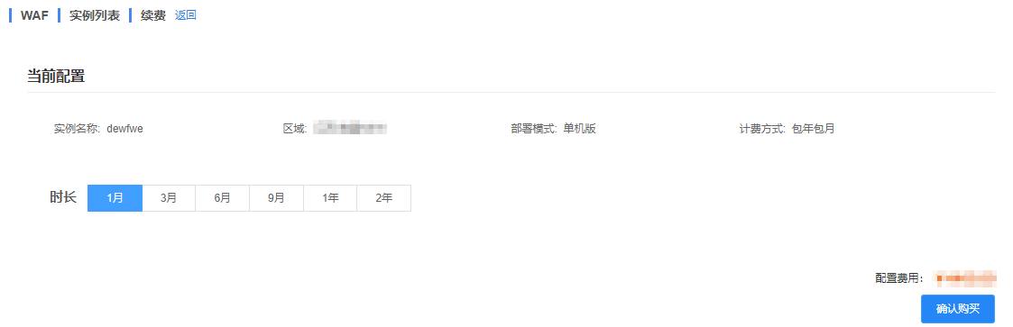 当购买的实例即将到达或者已经到达使用期限时,您会收到相应的短信或者邮件提醒。如果需要继续使用Web应用防火墙_独享防护实例,则可以参考如下步骤为实例续费。