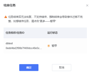 运行中和暂停中的任务,都可以选择结束来结束当前的迁移任务。
