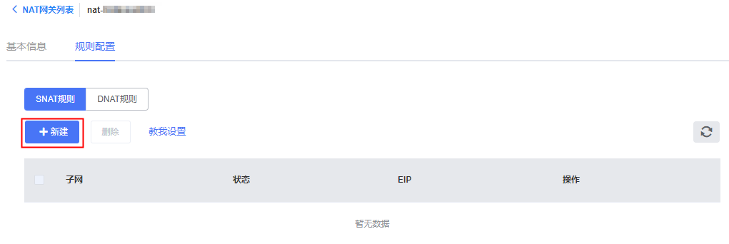 单击NAT网关示例ID,并选择“规则配置”页签。