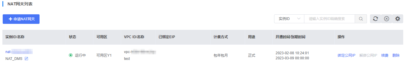 支付完成后,返回NAT网关列表页面,可以查看到已创建的NAT网关。