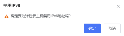 当某个开启了IPv6的云主机暂时不需要使用IPv6地址时,可以选择禁用IPv6地址。禁用不等于删除,当需要时可以重新开启并继续使用原来的IPv6地址。