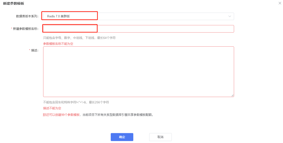 参数模板名称:输入参数模板的名称,参数模板名称具有唯一性。